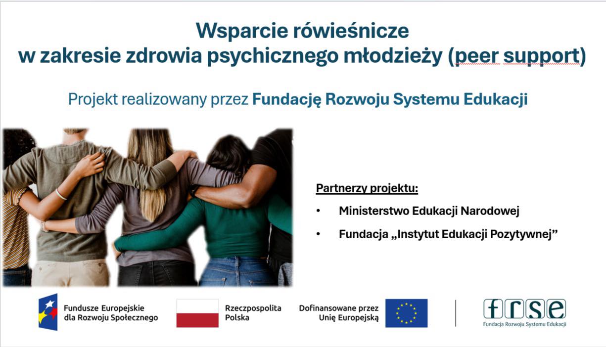 Projekt PEER SUPPORT będzie realizowany w naszym liceum przez trzy lata. Rozpoczynamy nabór liderów wsparcia rówieśniczego (schoolworkerów). Pod podanymi niżej adresami stron partnerów projektu znajdują się informacje na temat realizowanych działań: • Ministerstwo Edukacji Narodowej https://www.gov.pl/…/wsparcie-rowiesnicze-w-zakresie…, link otwiera się w…