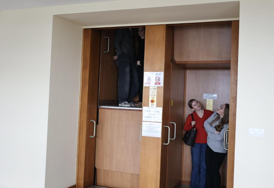 Dużym zainteresowaniem cieszył się również przejazd zabytkową windą typu paternoster ![]()