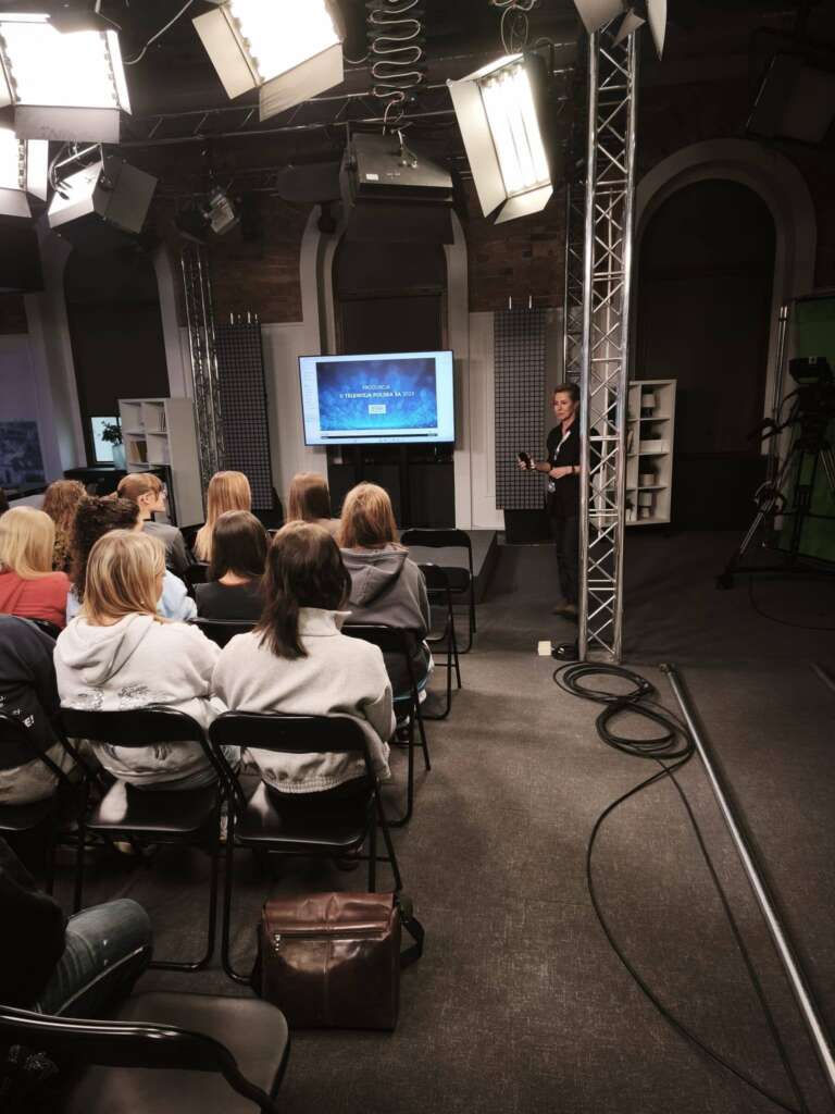 Uczniowie oglądali reportaż zrealizowany przez pana Stanisława Wolnego pt. „Purim: Święto Losów”, który opowiada o jednym z najbardziej radosnych świąt żydowskich i jak ono jest dziś obchodzone przez obecnie mieszkających w Polsce Żydów. Ponadto młodzież miała okazję porozmawiać z panią kierownik produkcji o kulisach pracy w mediach, funkcjonowaniu telewizji, jak też o samym zawodzie i byciu dziennikarzem, blaskach i cieniach tej profesji.