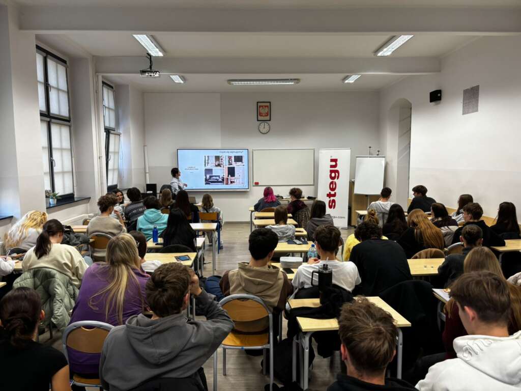 Na te i inne istotne pytania, podczas spotkania z uczniami klasy 4e oraz 3f, odpowiadała p. Anna Żyrek, Dyrektor HR w firmie Stegu sp. z o.o.